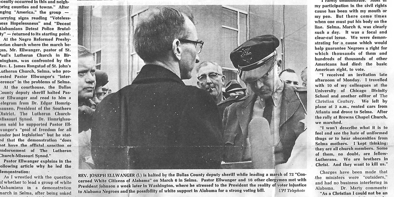 Ellwanger, however, says he had a different experience, receiving affirmation and encouragement from his congregation. Still, he faced challenges to his involvement in the Movement. That’s because he served the Lutheran Church’s Missouri Synod (LCMS), a conservative denomination that resisted getting involved in activities connected to politics and social activism.